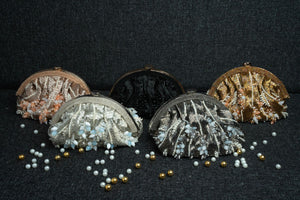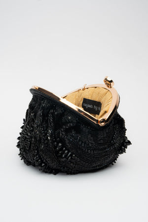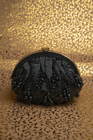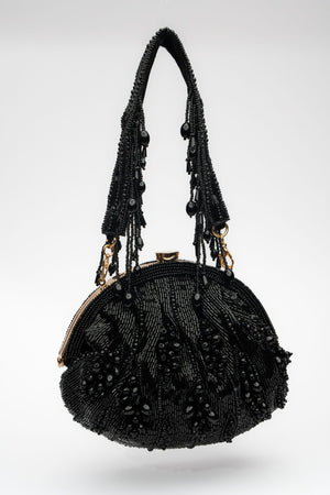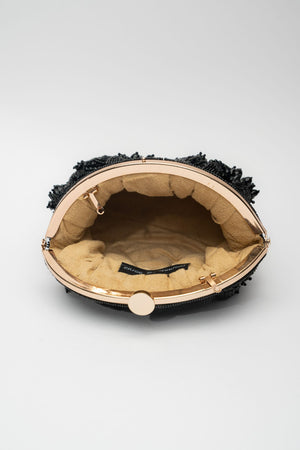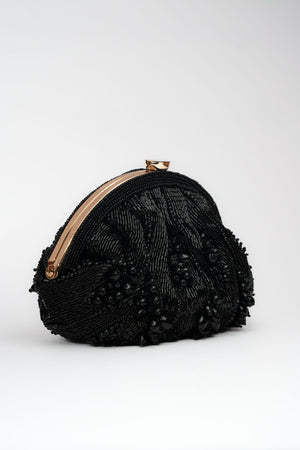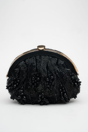 A chic yet stand out piece dressed with black beads that come together with a beaded studded frame finish and a beaded tassel handle.
