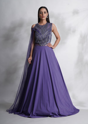 Beads Embroidered Purple Gown