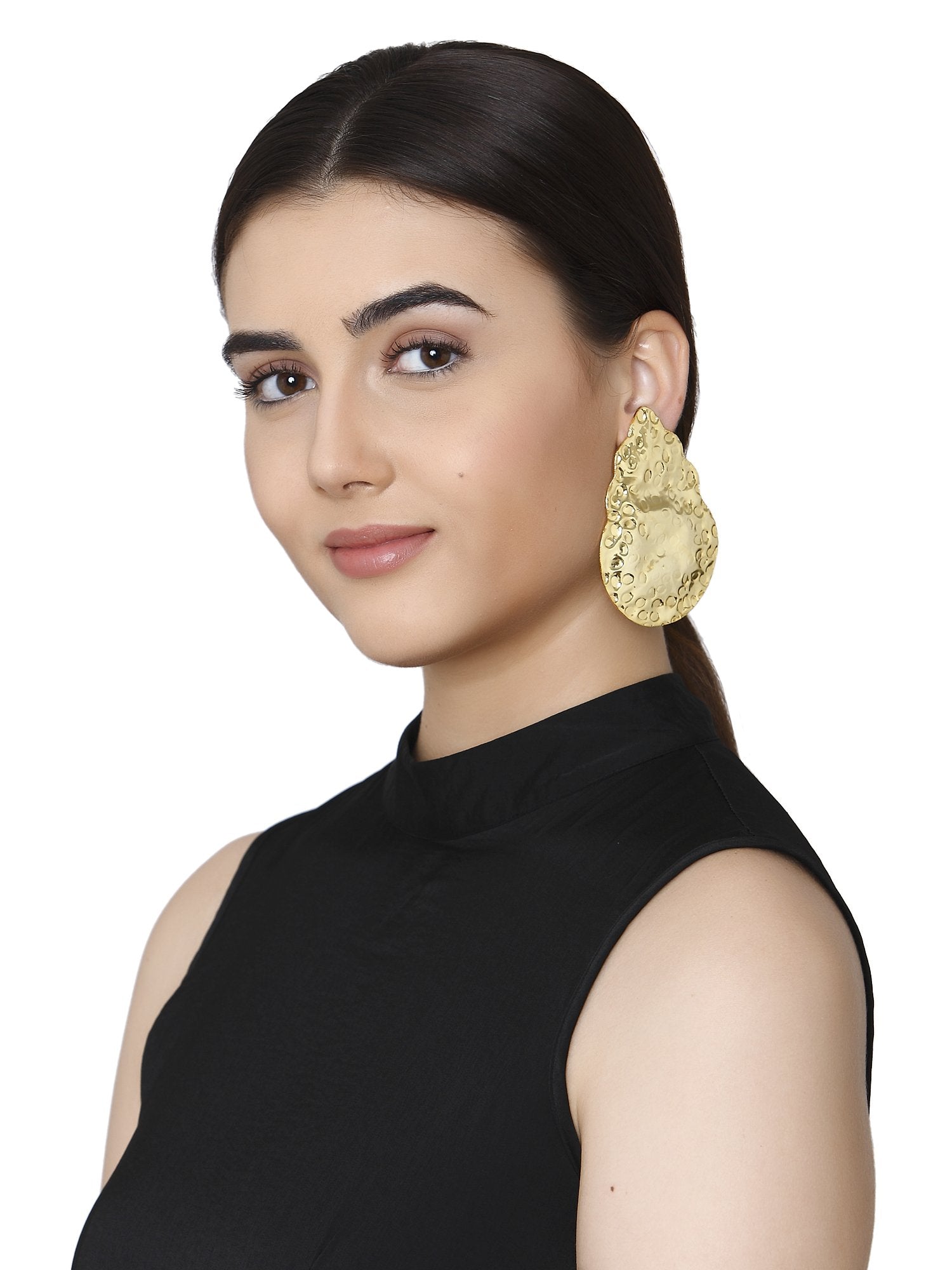 Beaten Drop Gold Earring