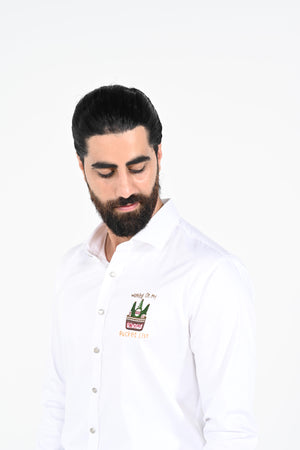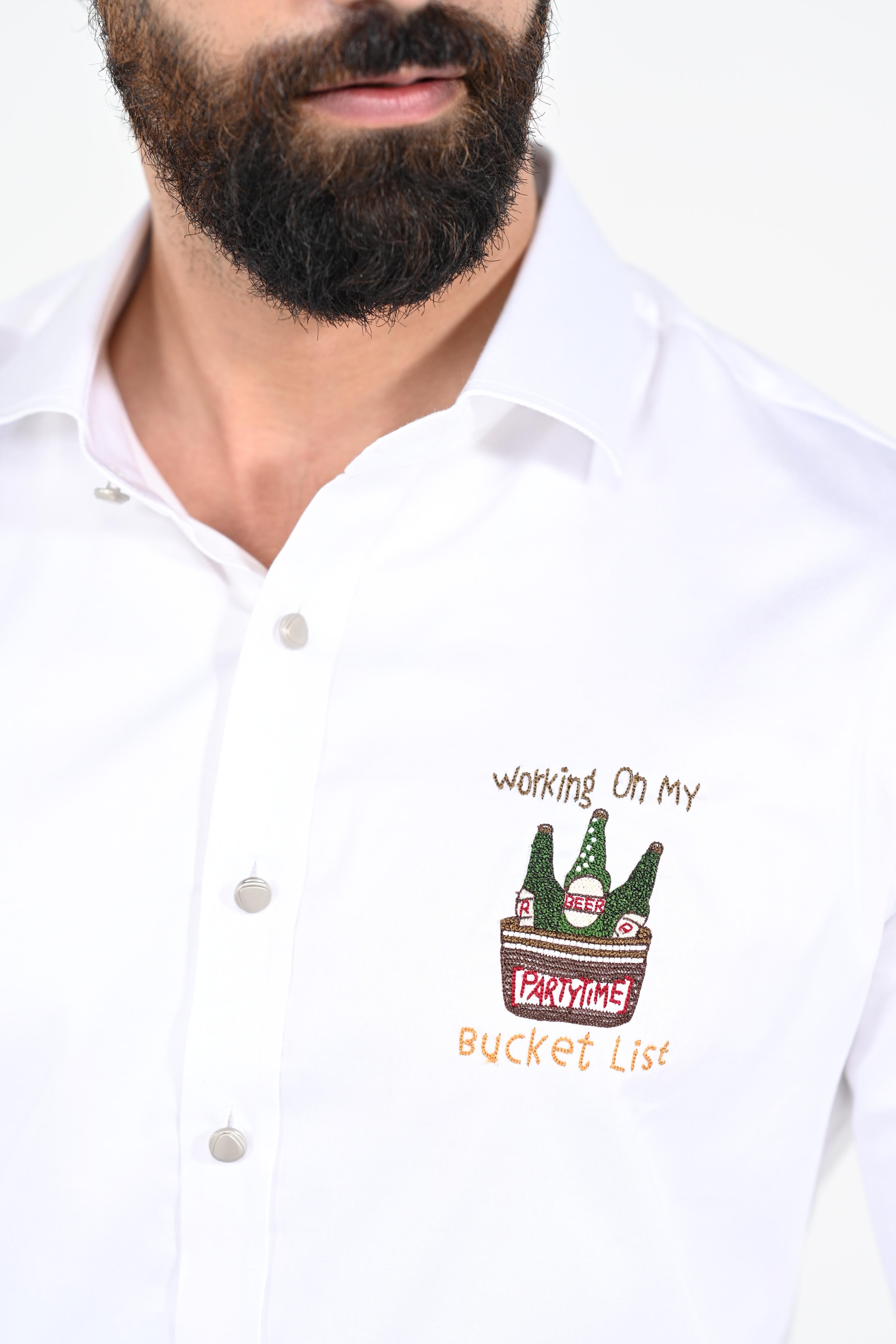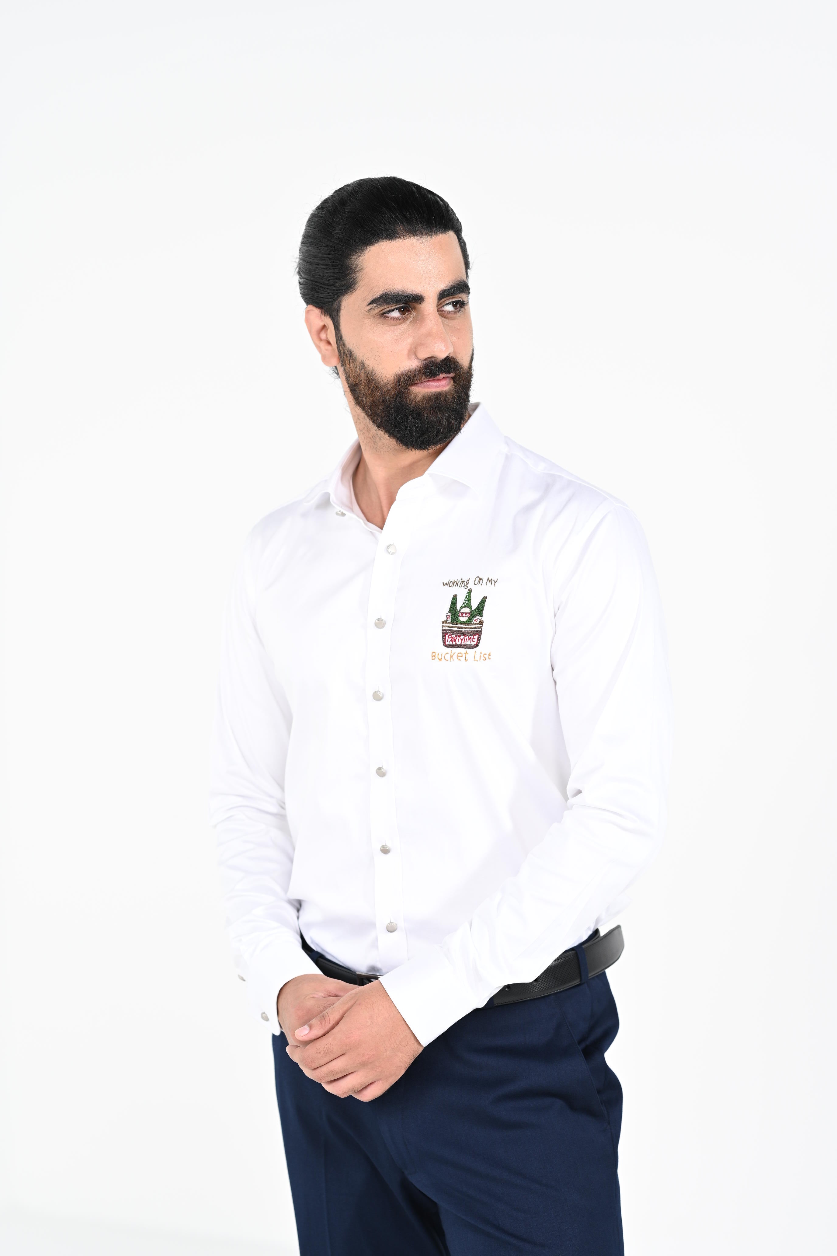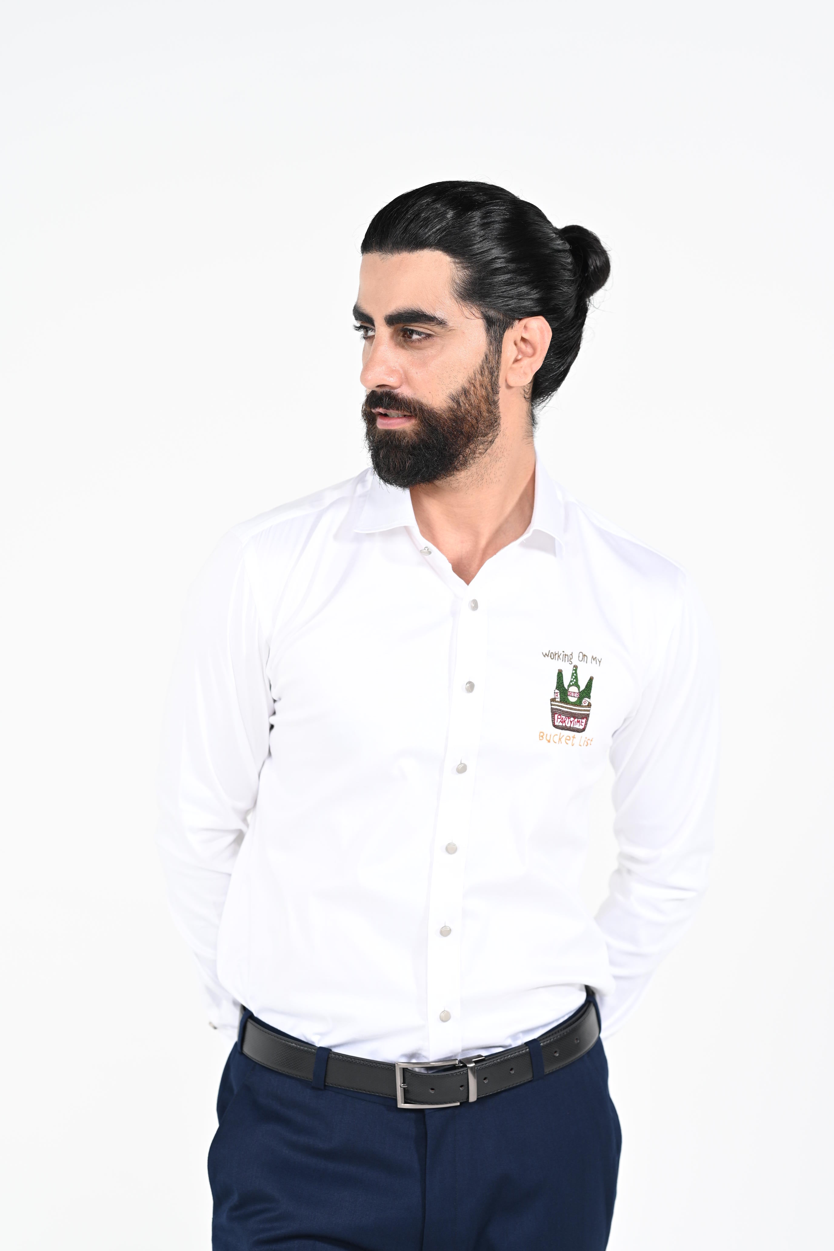 Featuring a White shirt hand embroidered with thread and cutdana cotton strech base fabric .This contains only one piece. Color of the actual garment may vary due to lighting conditions during the shoot .
