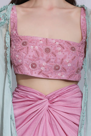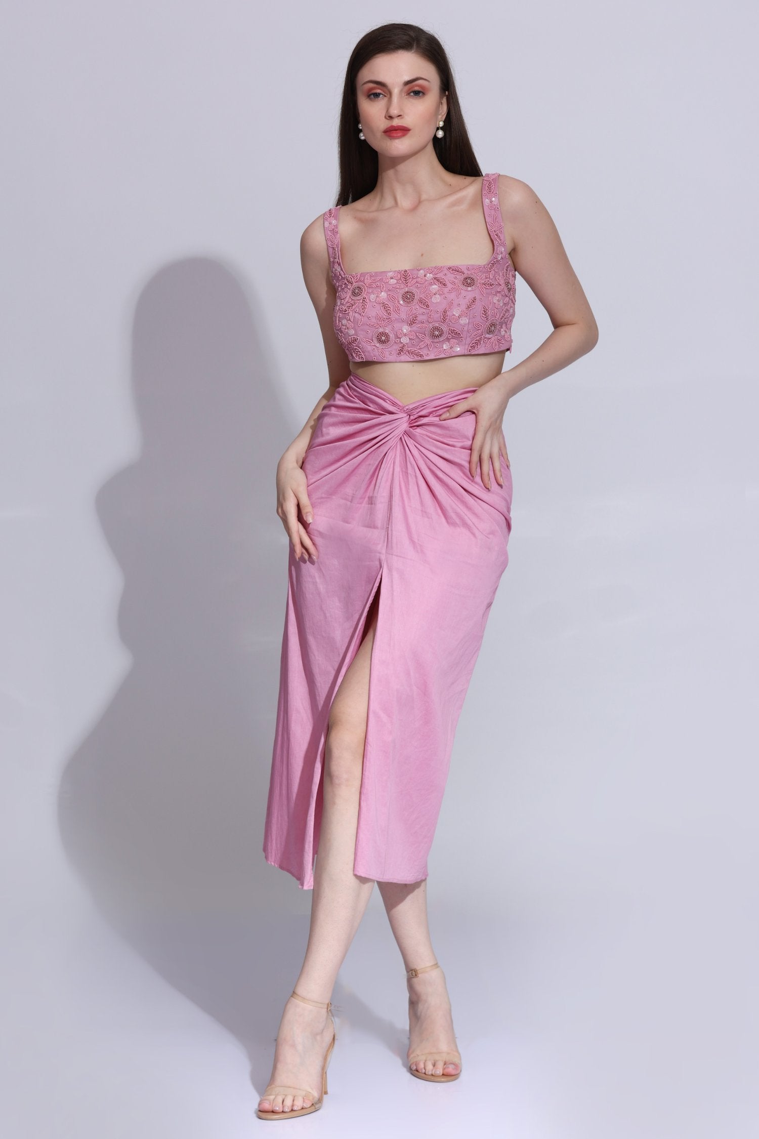 Pink Cotton Begonia Slit Skirt