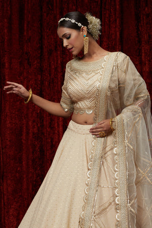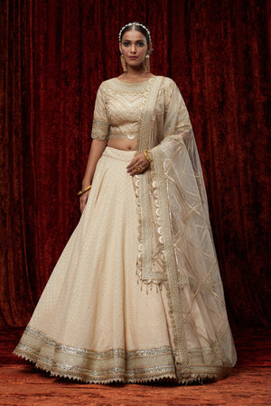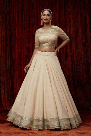 Beige Cotton Chanderi Lehenga Set