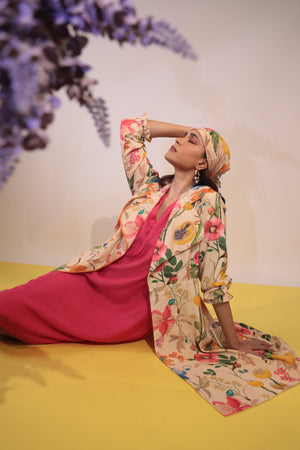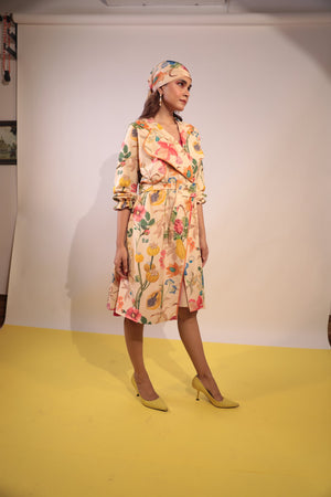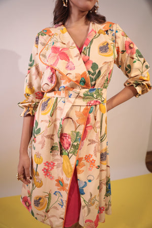 Custom Print Muslin Silk Trench Coat, With Inner & Belt