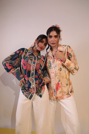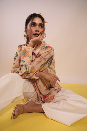Beige Floral Gerogette Shirt