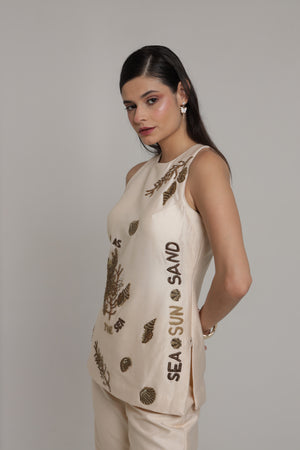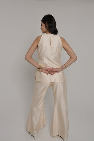 Beige halter neck top with wide leg pant