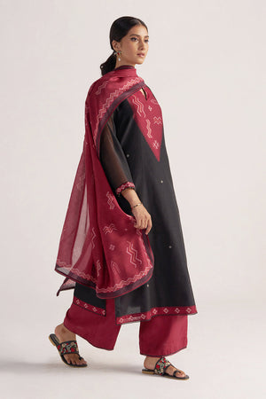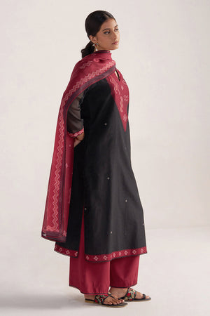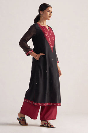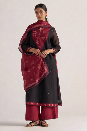 Black and Maroon Woven Kurta Set