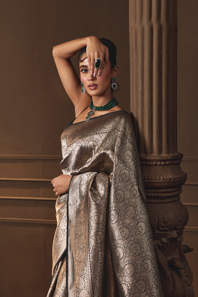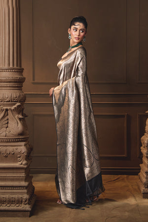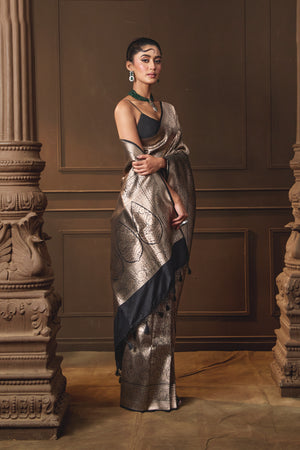 Black Banarsi Brocade Silk Saree With Running Blouse Piece