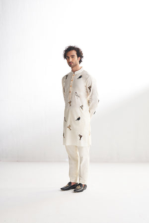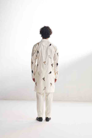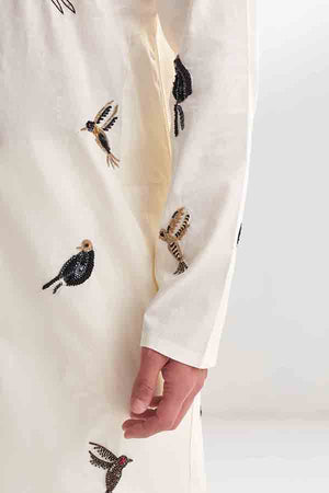 Cotton Viscose Kurta with Bird motifs zardosi embroidery.