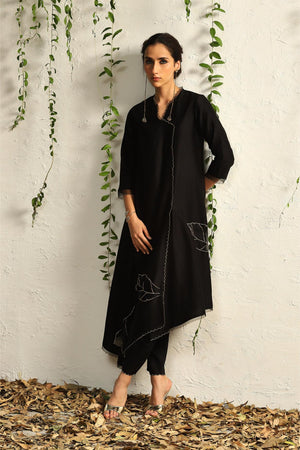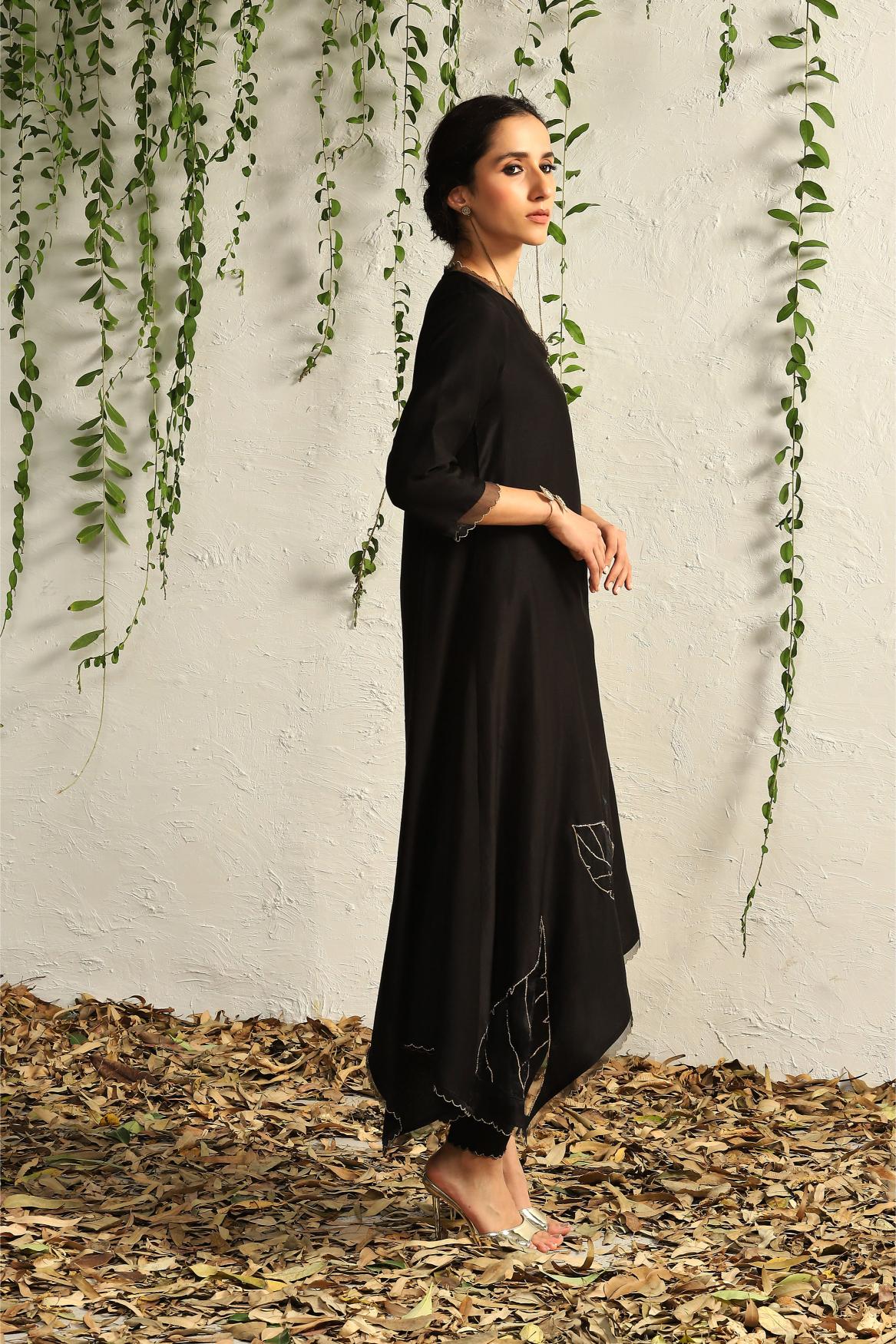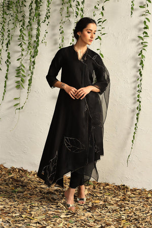 Black chanderi asymmetrical Kurta set- set of 3