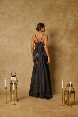 Black Embroidered Mermaid Skirt Dupatta and Blouse