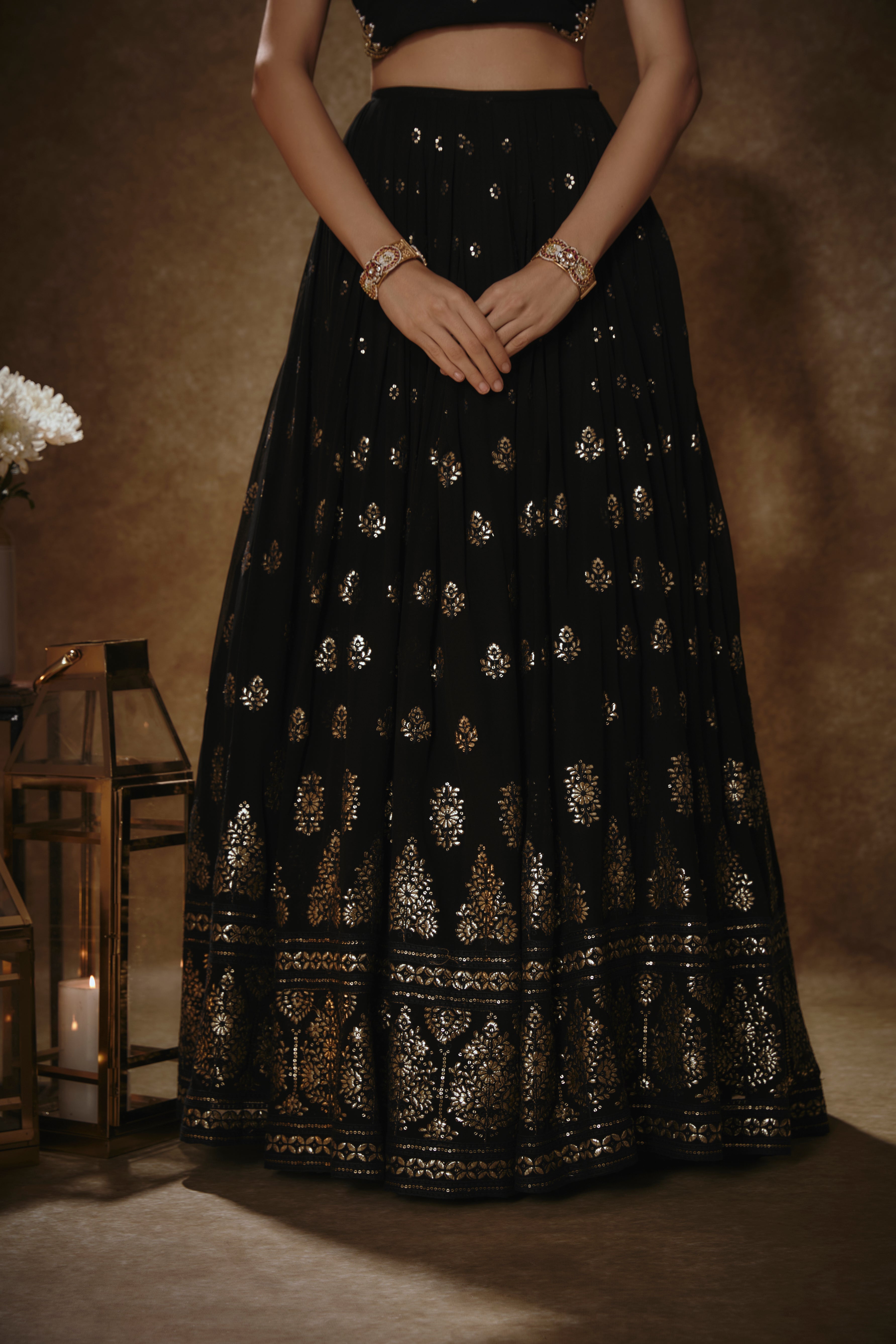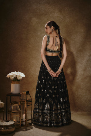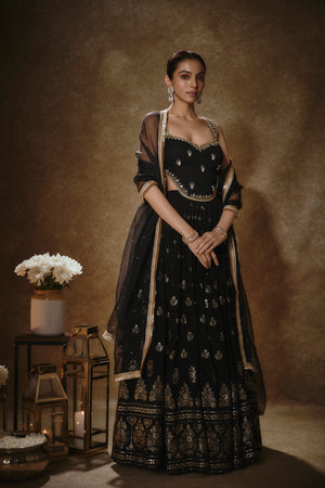 Black & Gold Lehenga Set