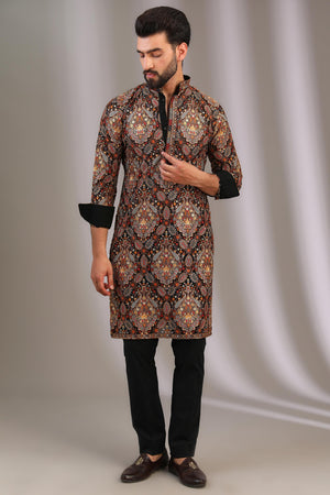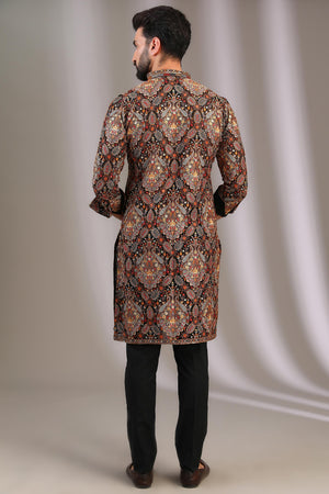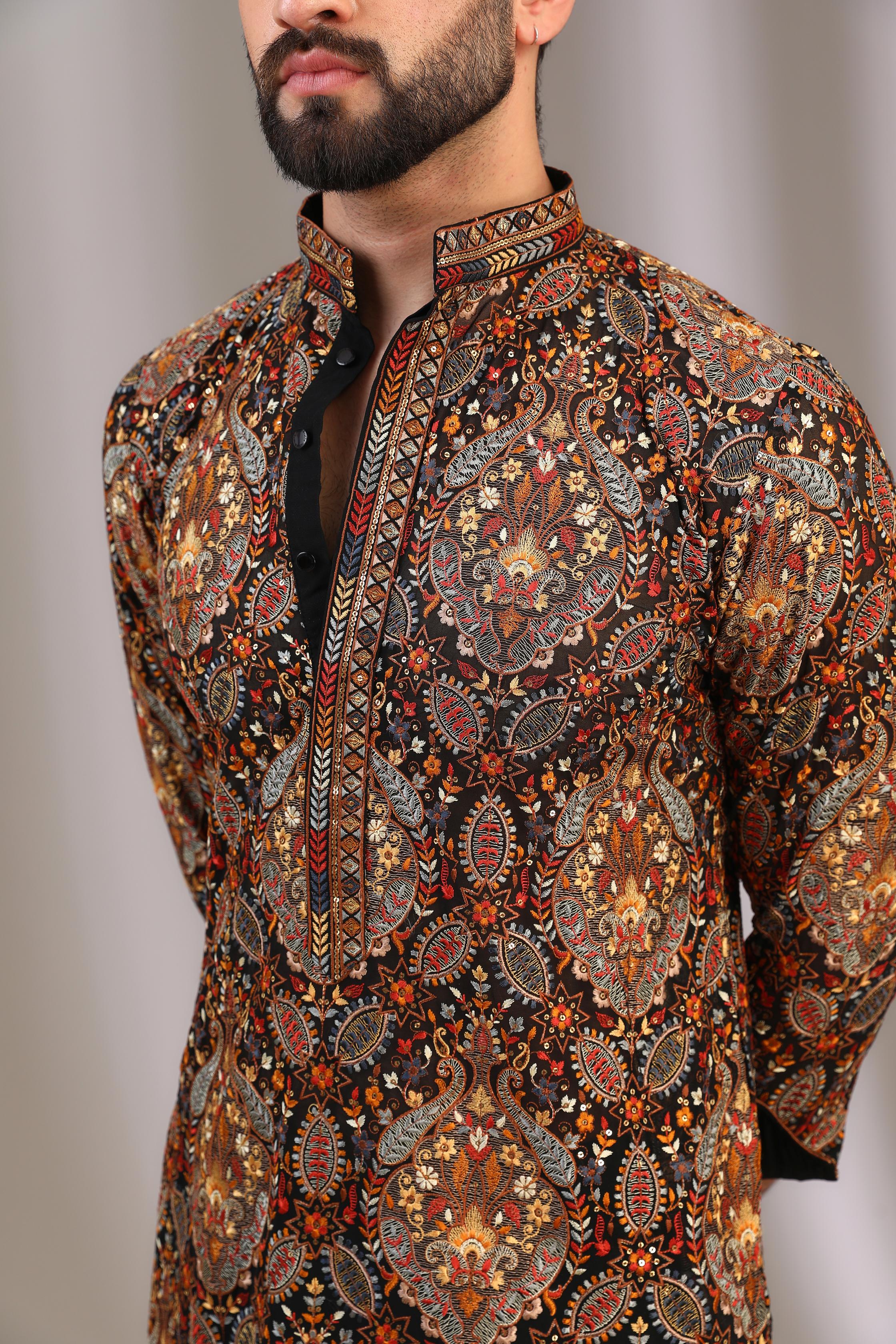 BLACK GORGETTE MULTI THREAD + SEQUIN WORK UNLINED KURTA W COTTON SILK PANT