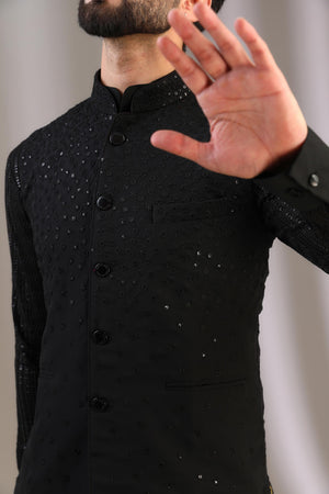 BLACK GORGTTE NARGIS BRUST ON TOP BUNDI W BLACK G-60 EMBO. KURTA W PANT