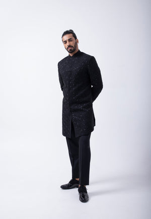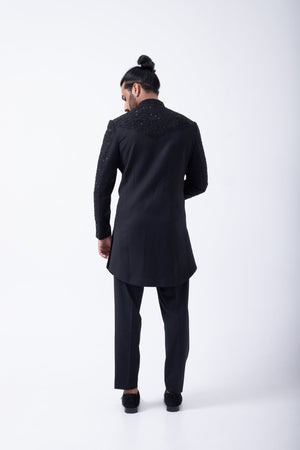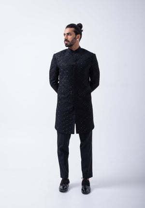 Groomy heavy fully hand embriodered excuisite indowestern complimented with a pair of tonal trousers. Indowestern Length is 38".The color may slightly vary due to screen lighting.