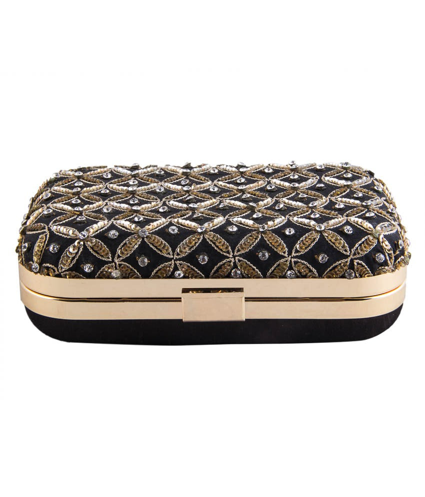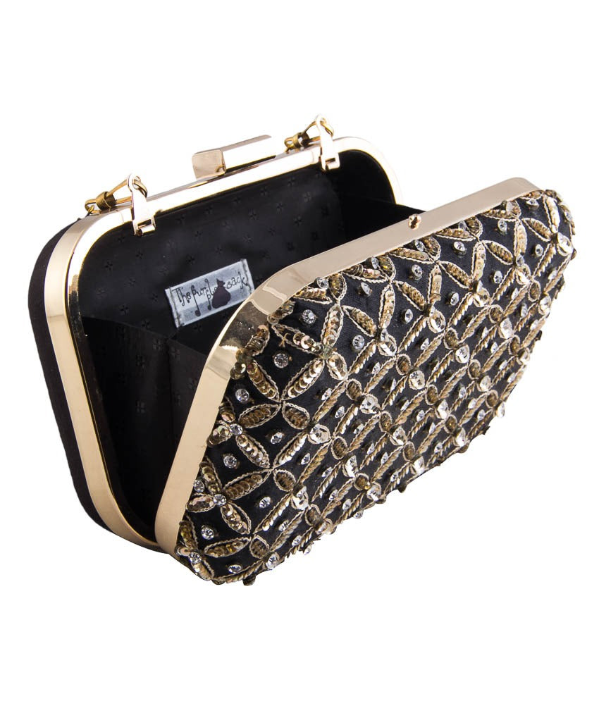 With scintillating design and hand embroidery this clutch bag comes with a detachable sling chain. Carry it with the chain or simply clutch it.