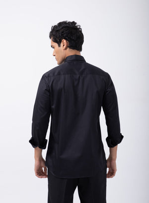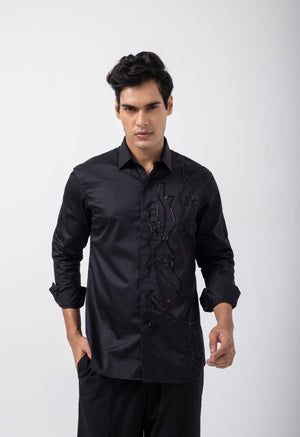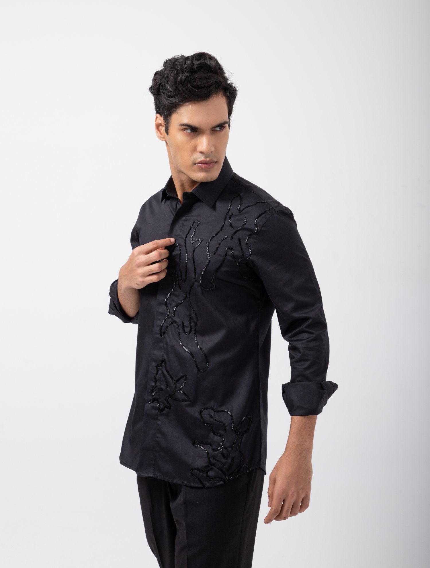 Black Giza cotton leopard skin abstract hand embriodered shirt. Shirt length - 28, **The color may slightly vary due to screen lightning.