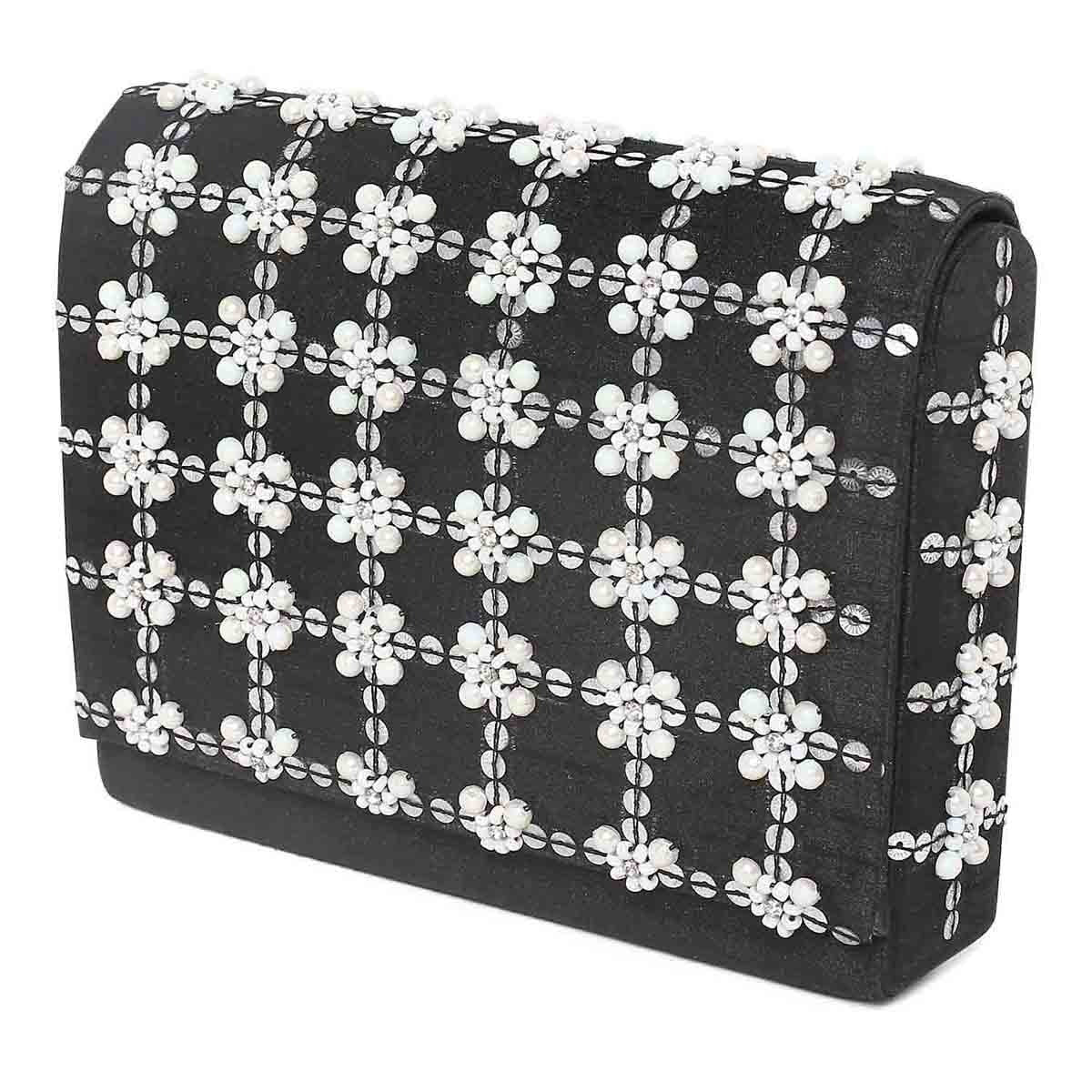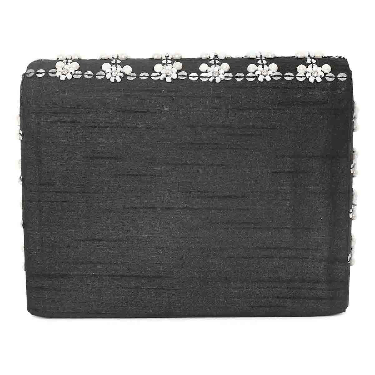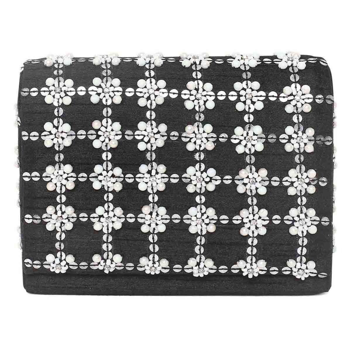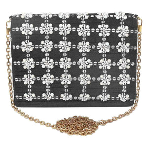 With scintillating design and hand embroidery this clutch bag comes with a detachable sling chain. Carry it with the chain or simply clutch it.
