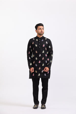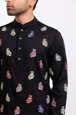 Cotton Viscose Kurta with Coloured Threads Hand Embroidery.