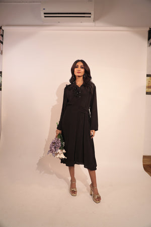 Crepe Black Dress With Flower Detailing