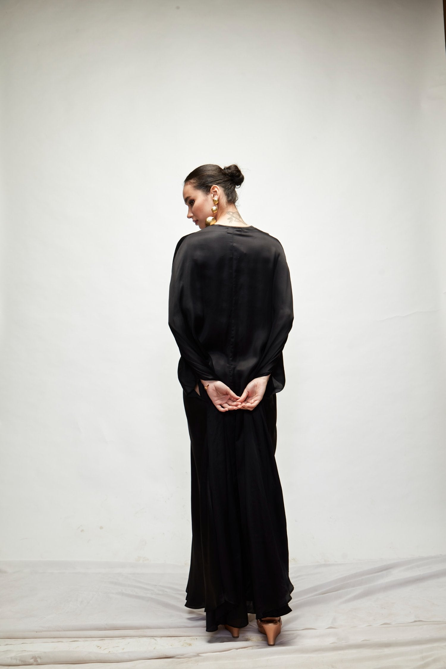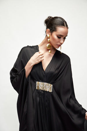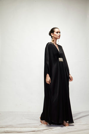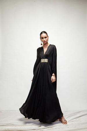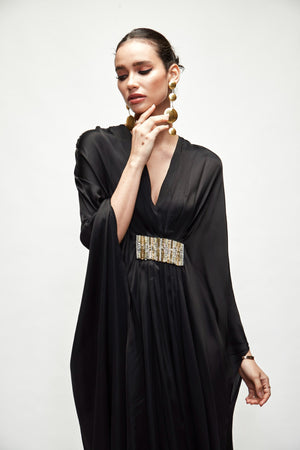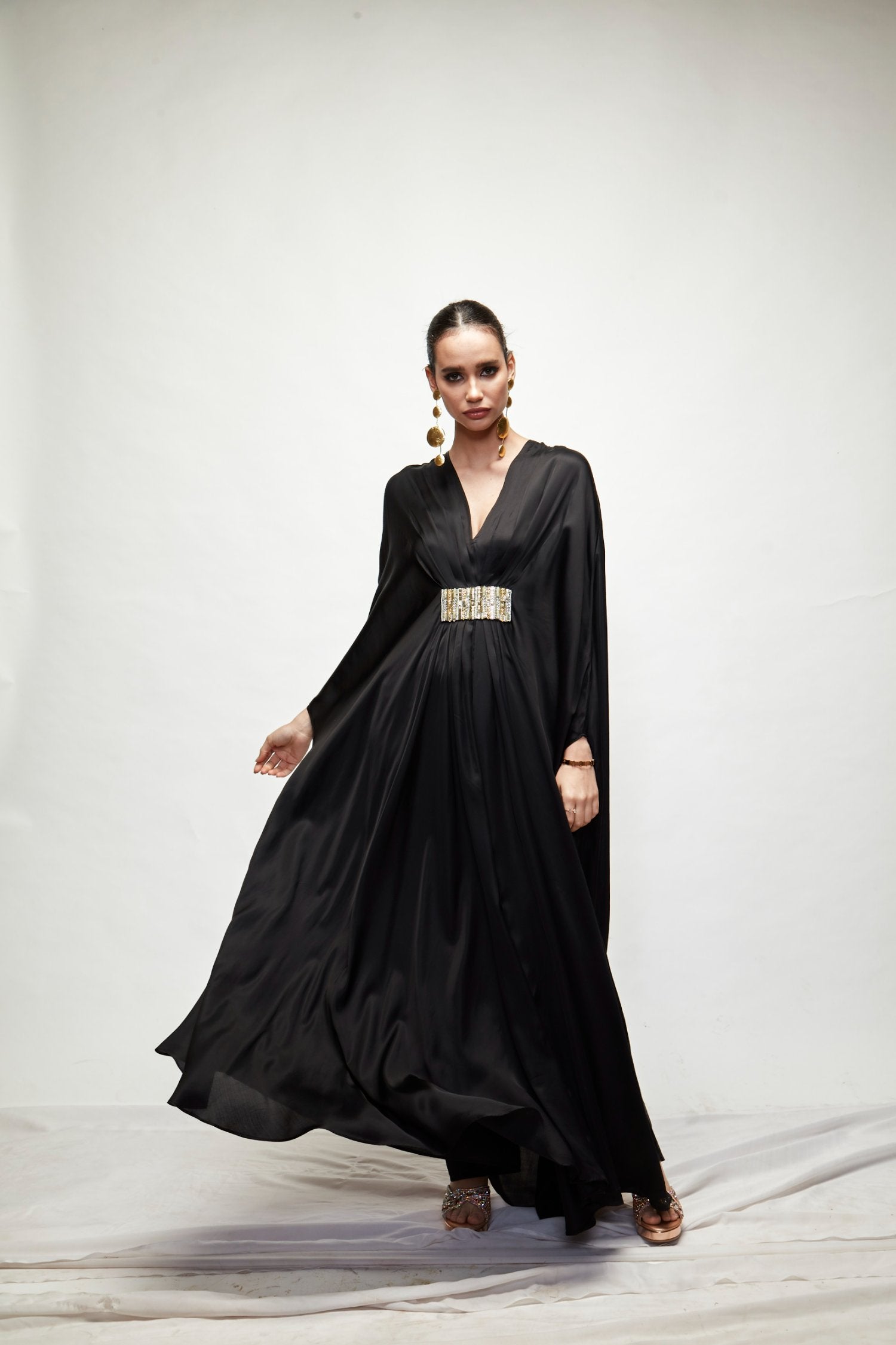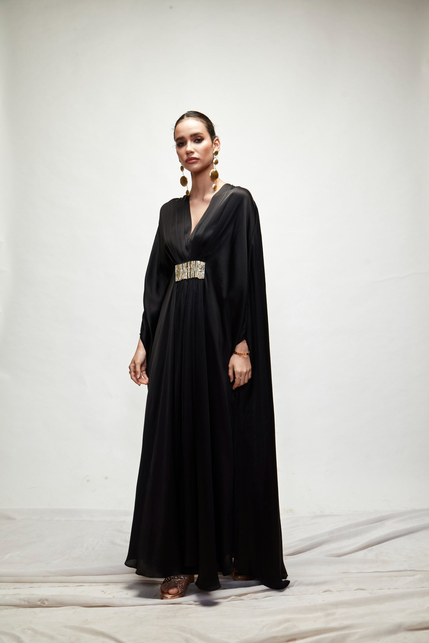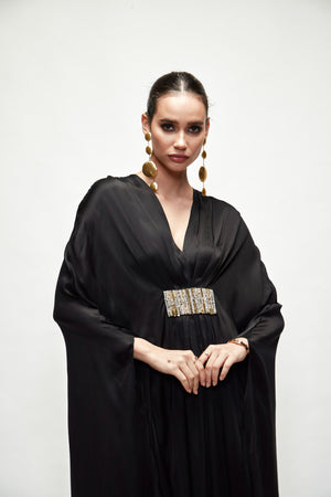 Silk Kaftaan With Front Pleate Detailing . Beaded Embroidery On Front