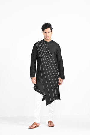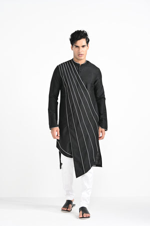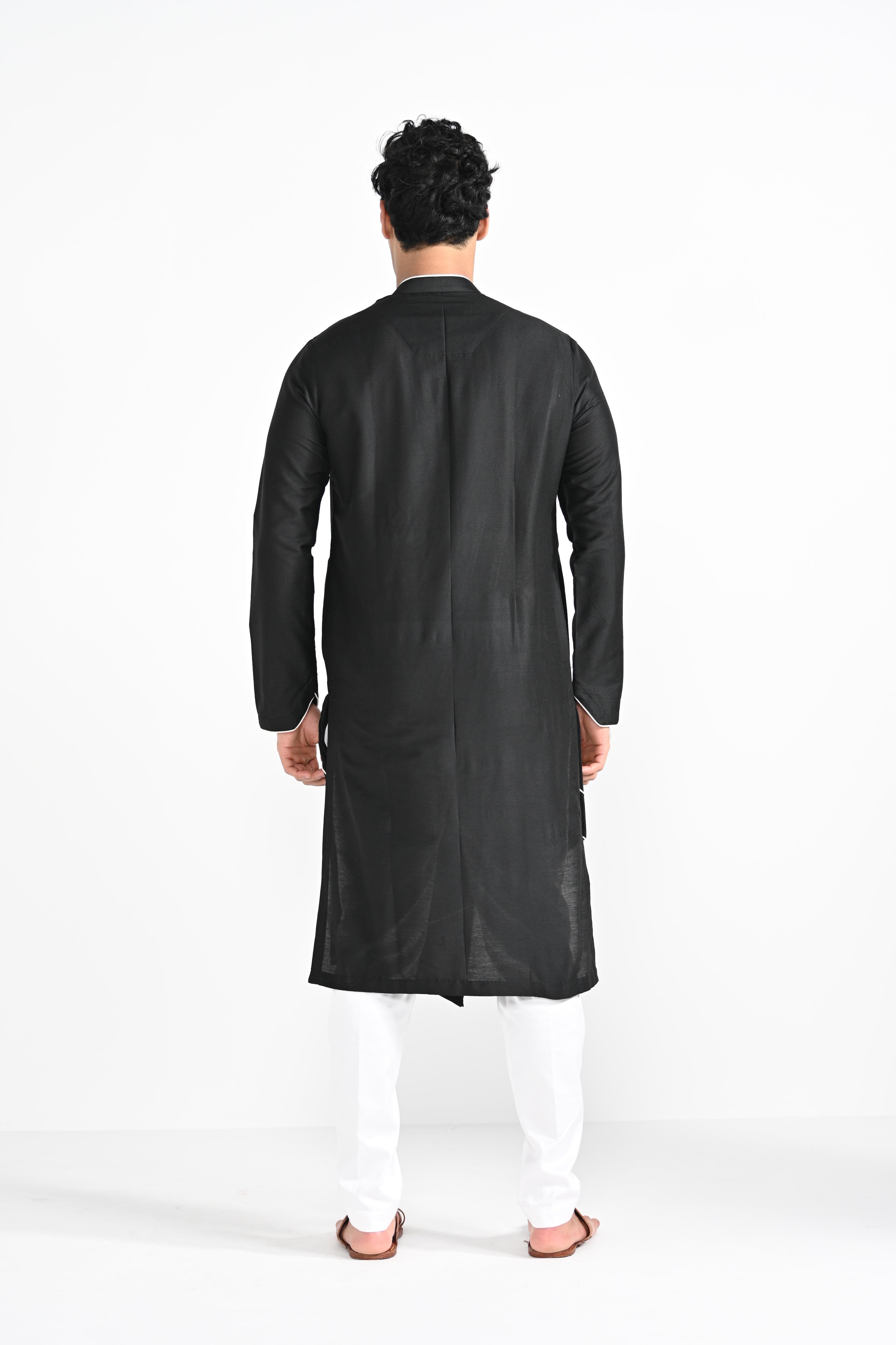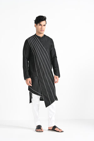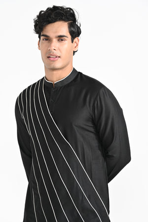Black Sufi Cordpiping Work Kurta Set