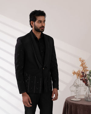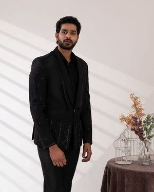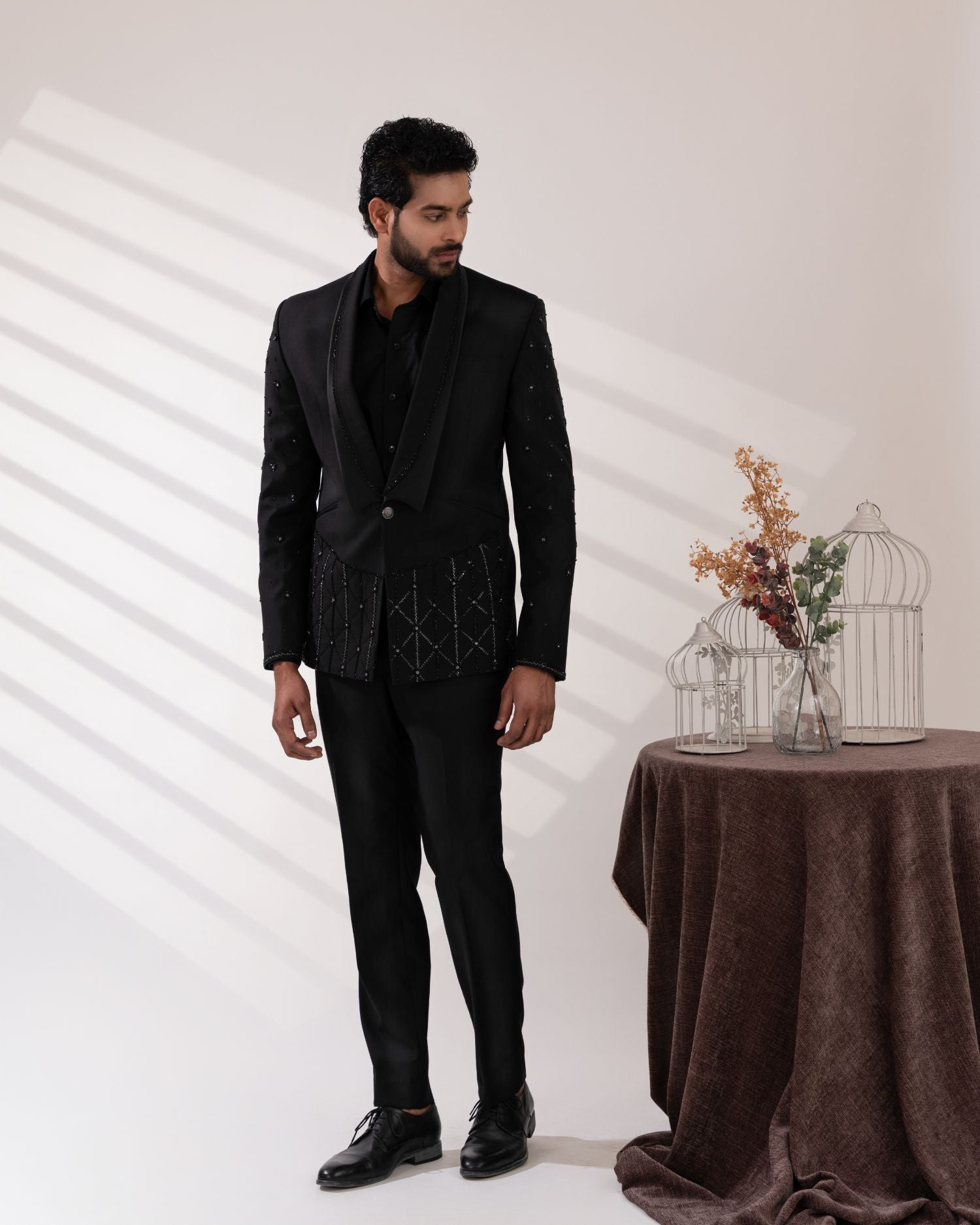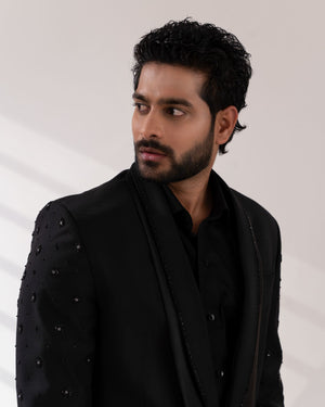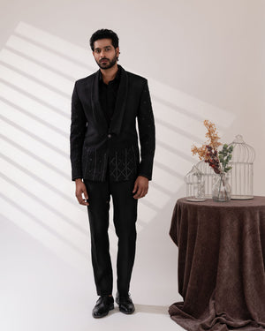 Black Double Lapel Tuxedo paired with Black Shirt & Pant