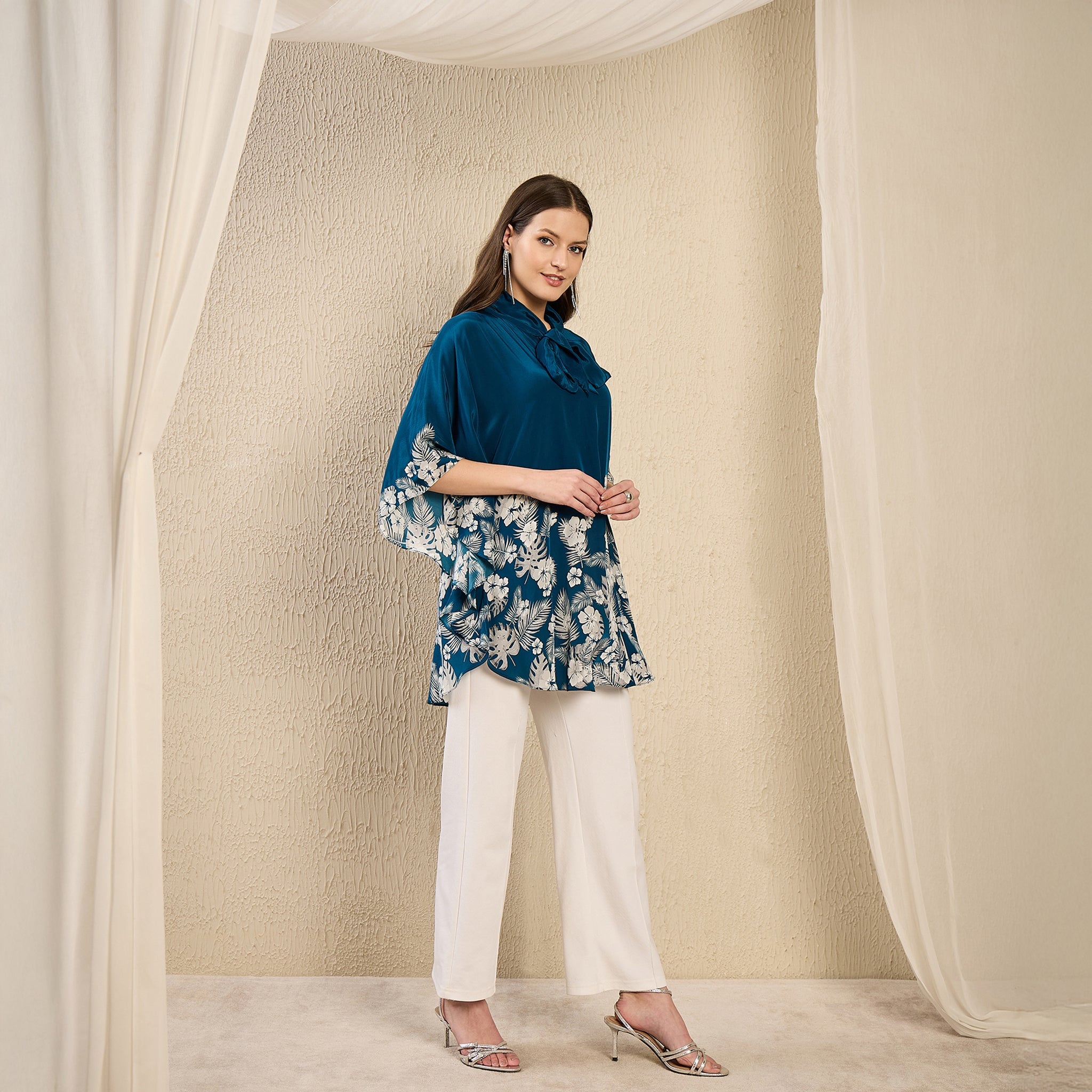 Style Guide Style the floral bow-tie top by pairing it with tailored trousers or a sleek skirt for a polished, refined look. For a more relaxed vibe, team it with your favorite jeans or casual pants. Let the bow-tie detail take center stage by keeping accessories minimal, such as simple studs or a delicate bracelet. Complete the look with pointed flats, block heels, or ankle boots depending on the occasion. Finish with soft waves or a neat ponytail and subtle makeup for an easy, chic look.