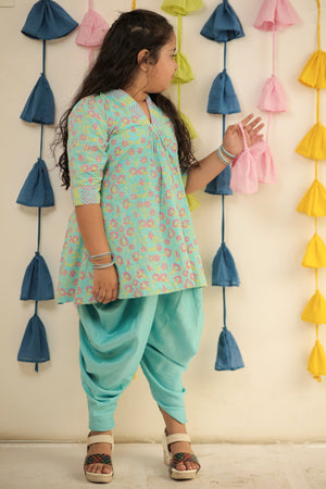 Kurta is paired with dhoti pants.They are sold as a set.Pant has elasticated waistband.