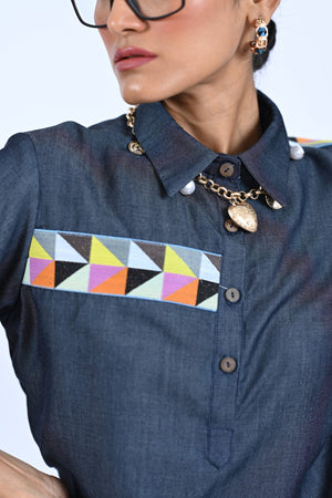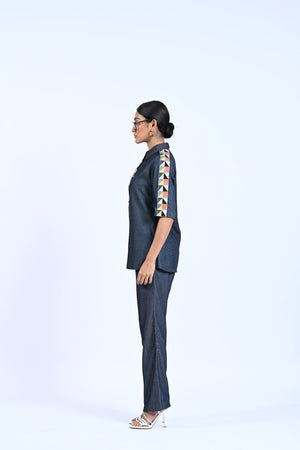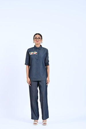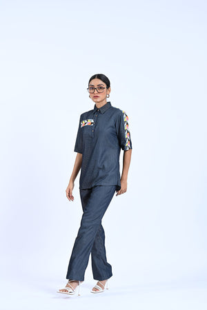 Elevate your style with our Blue Denim Co-ord, featuring a lace pocket shirt and side lace detailing trousers. Stand out with unique lace accents while staying comfortable in denim. Perfect for a polished, trendy look.