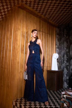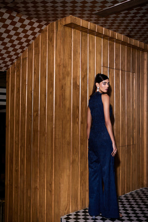 Blue Jacquard Jumpsuit