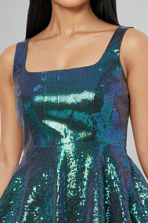Blue Metallic Sequin Dress.