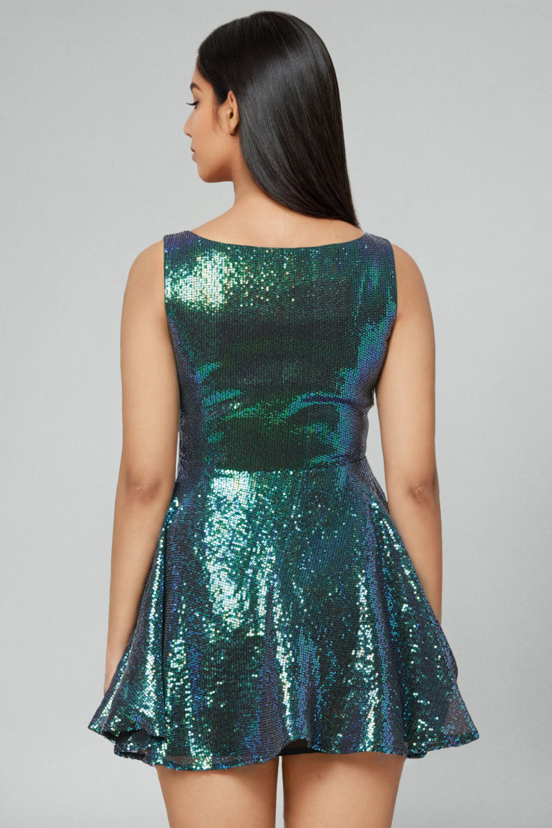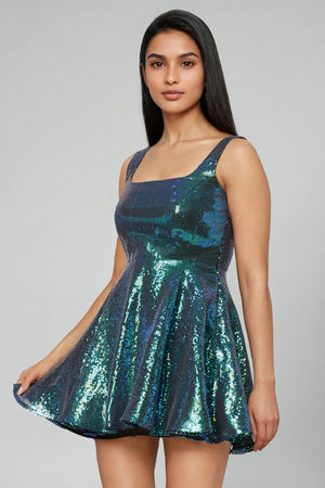 Blue Metallic Sequins Mini Dress