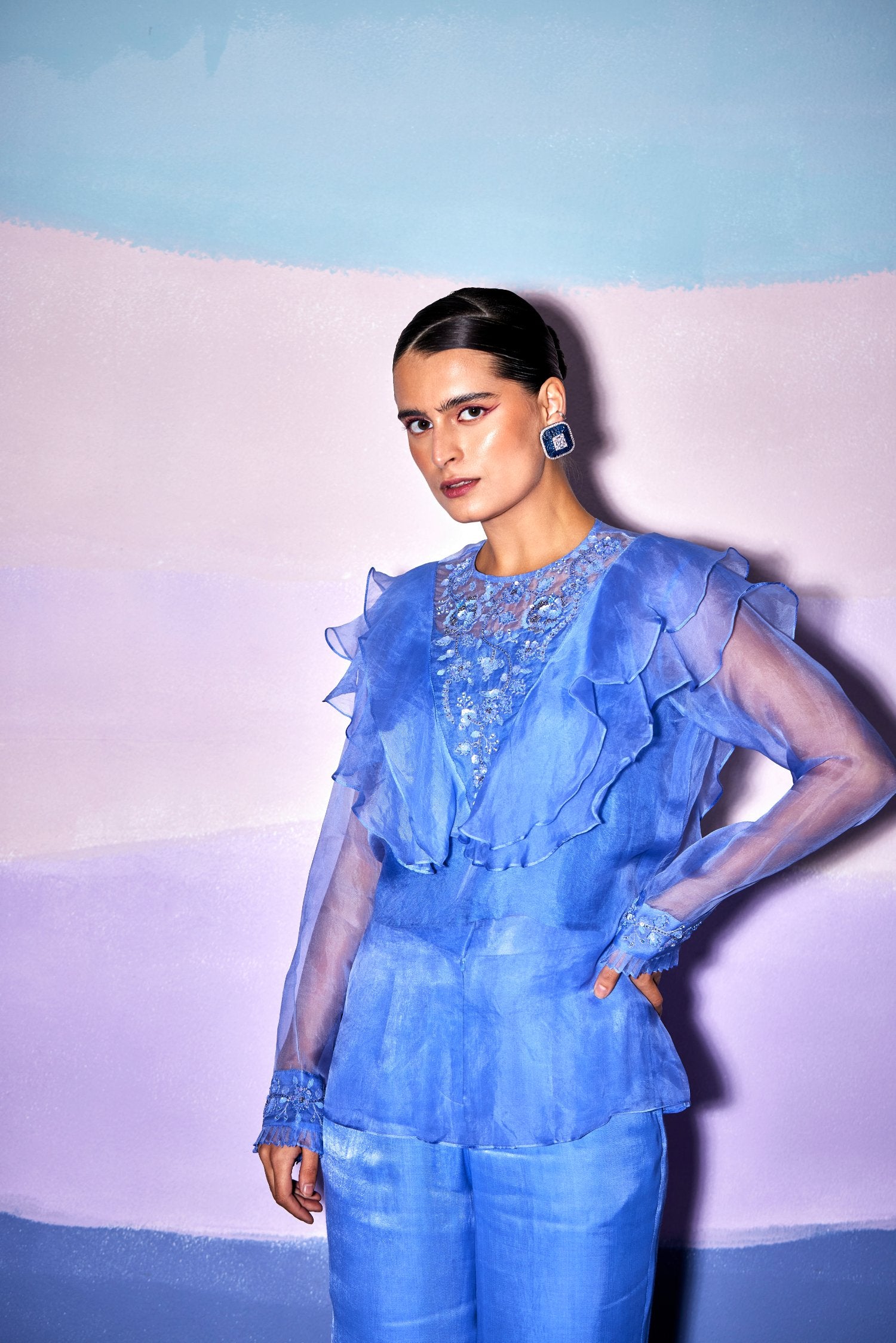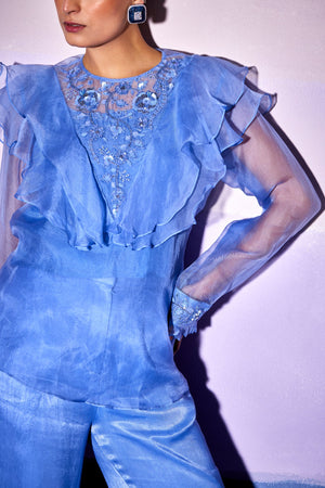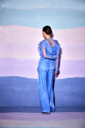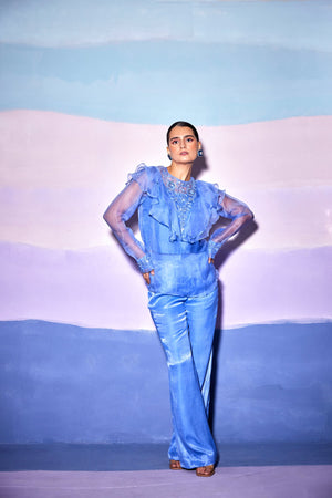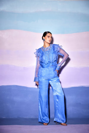 Blue Satin Blue Star Pants