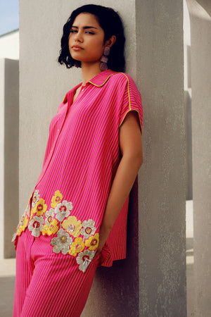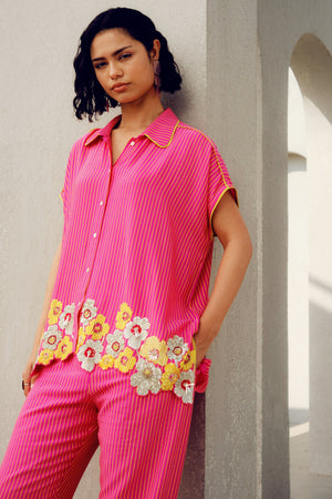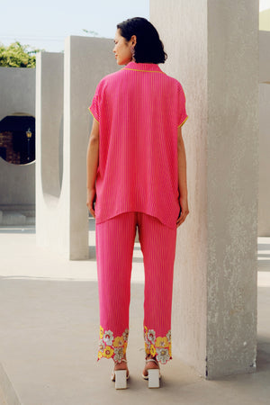 The Blue Striped Shorts is made of double georgette. It features an overall striped pattern.