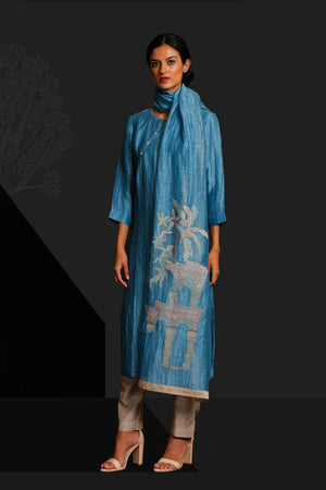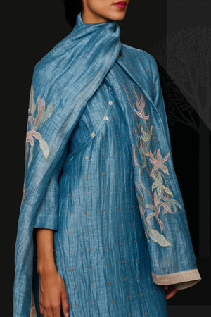 A Linen Silk 3 Piece Set With Penta Embroidery On The Dupatta