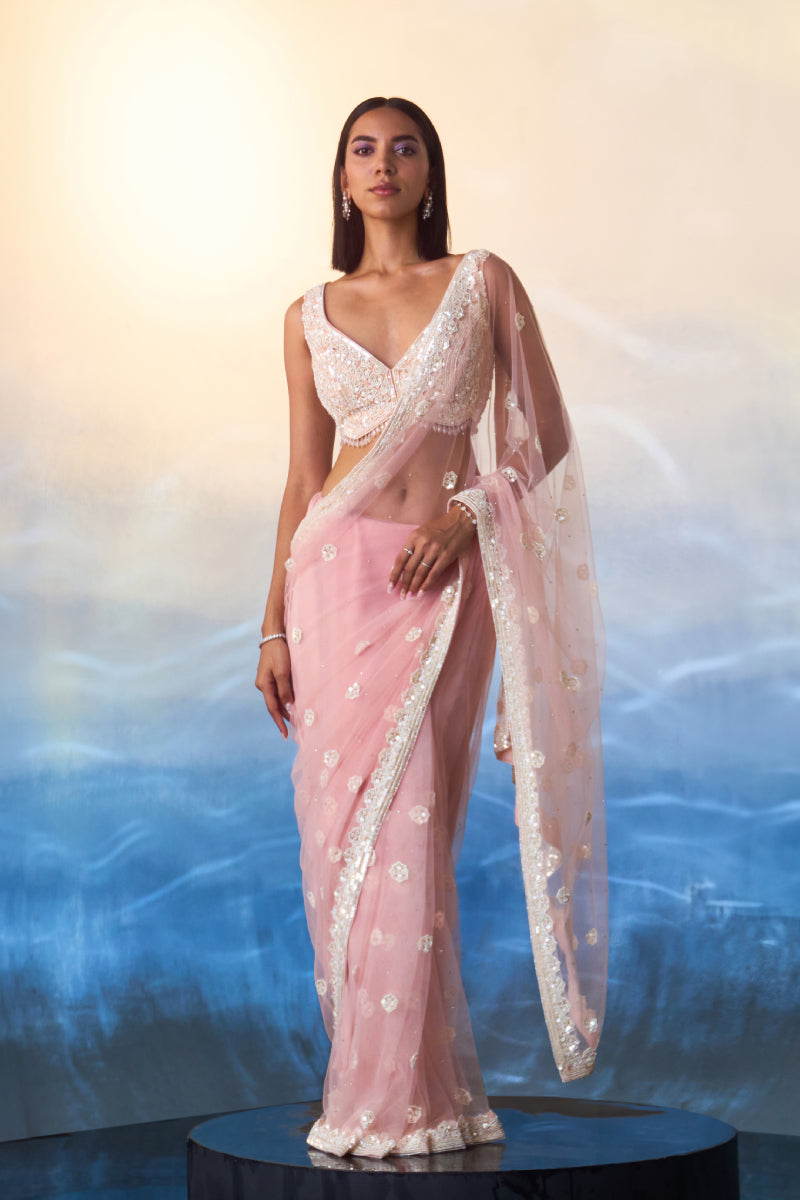 Blush Pink Net Saree