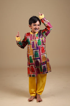 • The bomber kurta features a modern, trendy cut that adds a contemporary twist to traditional wear for boys.