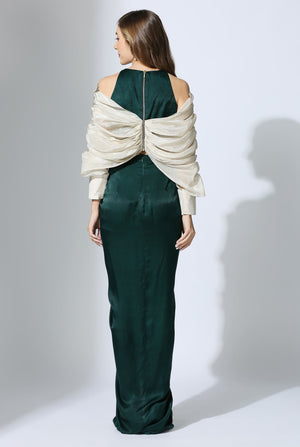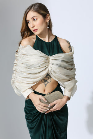 Bottle Green Drape Skirt Set With Tissue Blouse