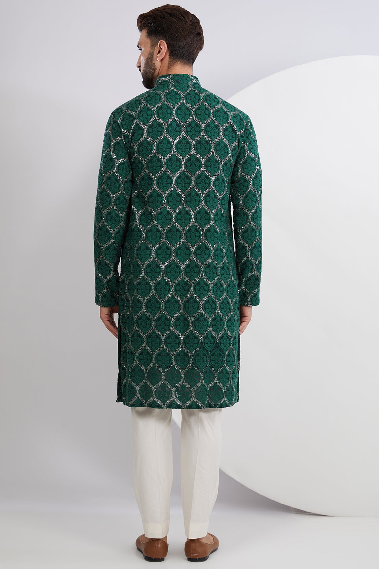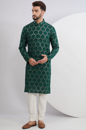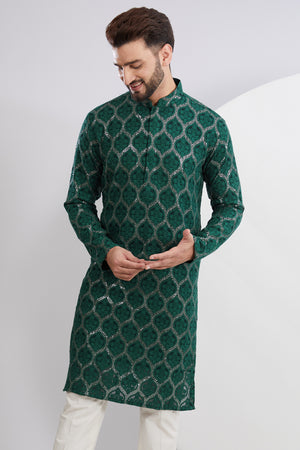 Bottle Green Embroidered Kurta with Intricate Sequins Work