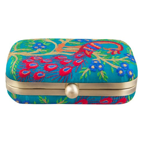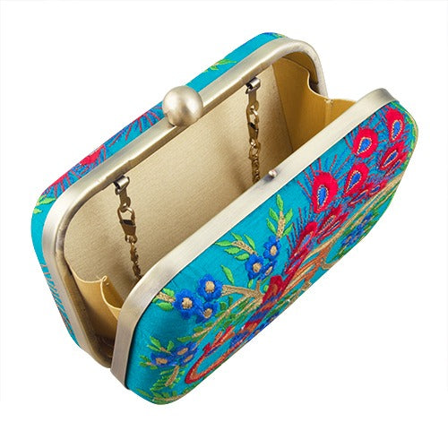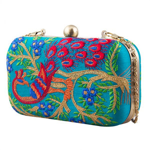 With scintillating design and hand embroidery this clutch bag comes with a detachable sling chain. Carry it with the chain or simply clutch it.