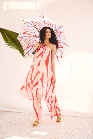 The top in this co-ord set is calf-length with thin straps above the bust and a tie-around