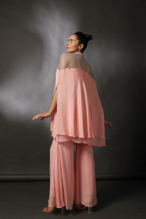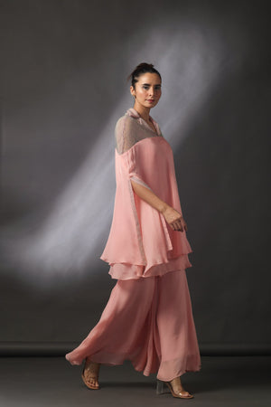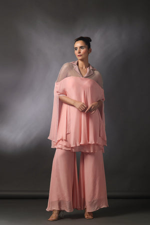 Cape Tunic With Flared Pants In Salmon Pink