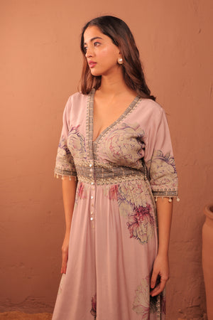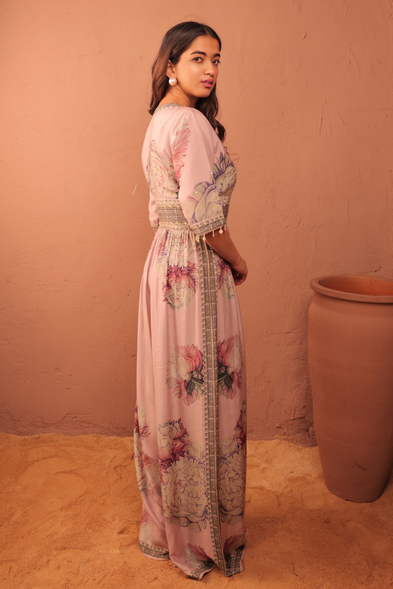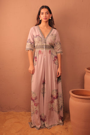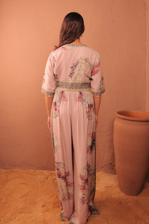 The Carnation Crush Jumpsuit is a romantic ensemble inspired by
