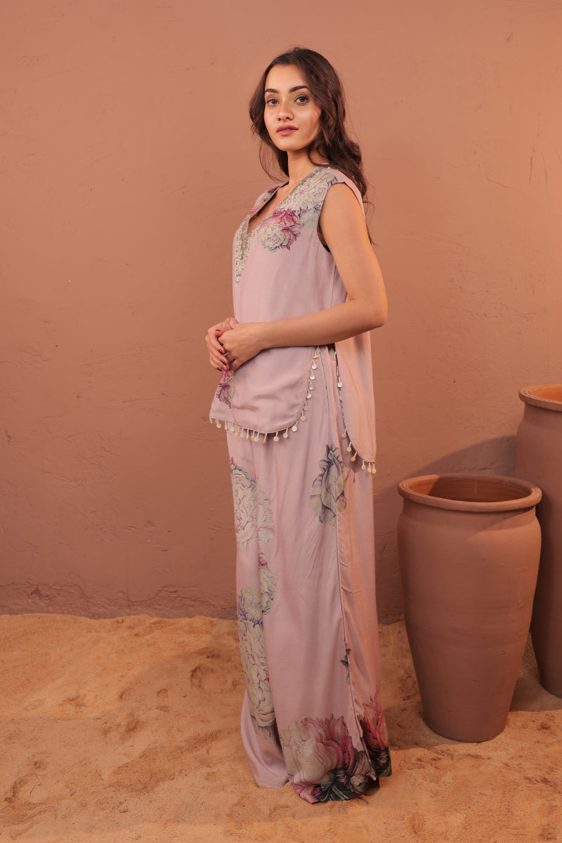 The Carnation Crush Vest co-ord Set is a romantic ensemble inspired by