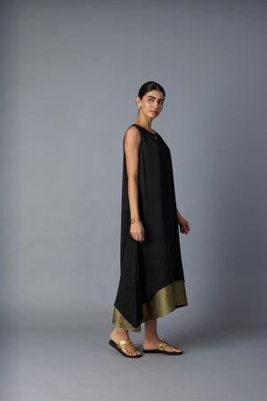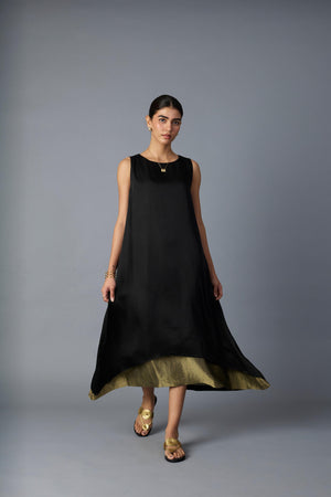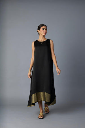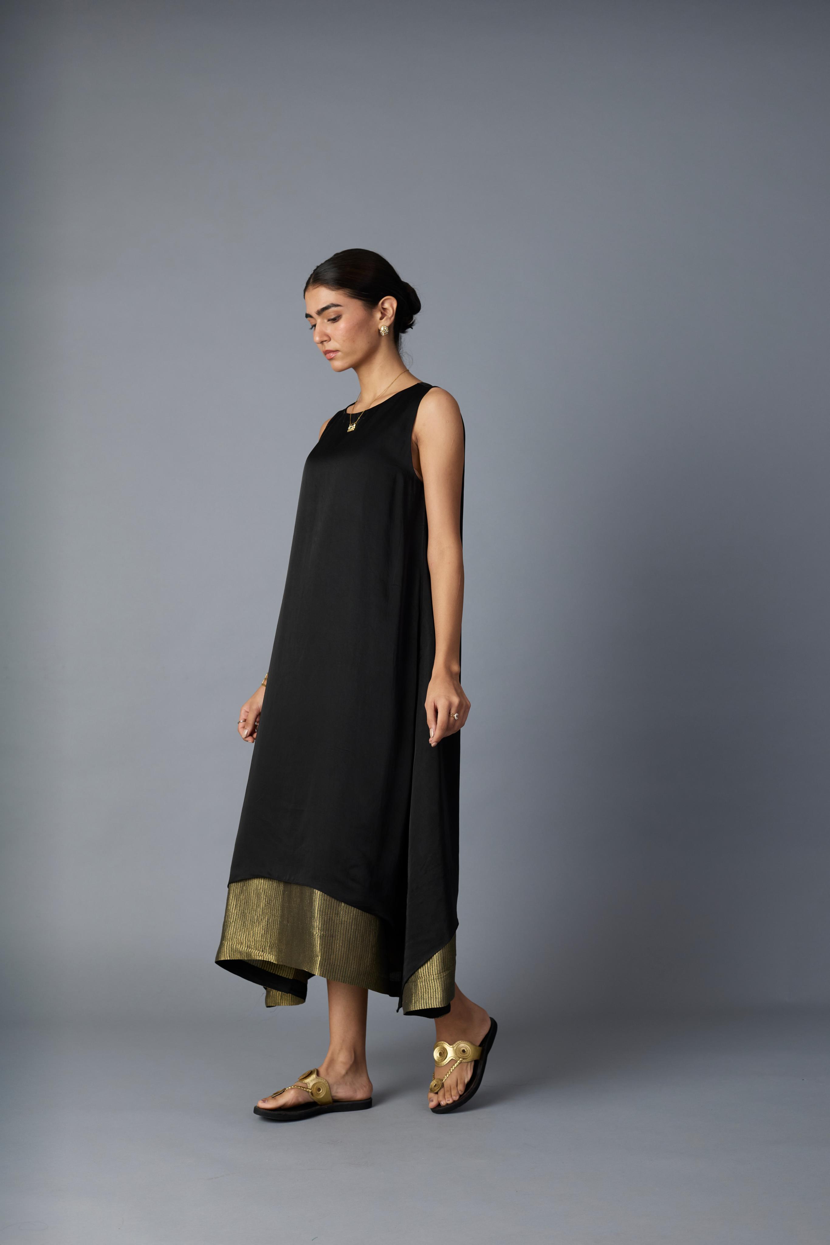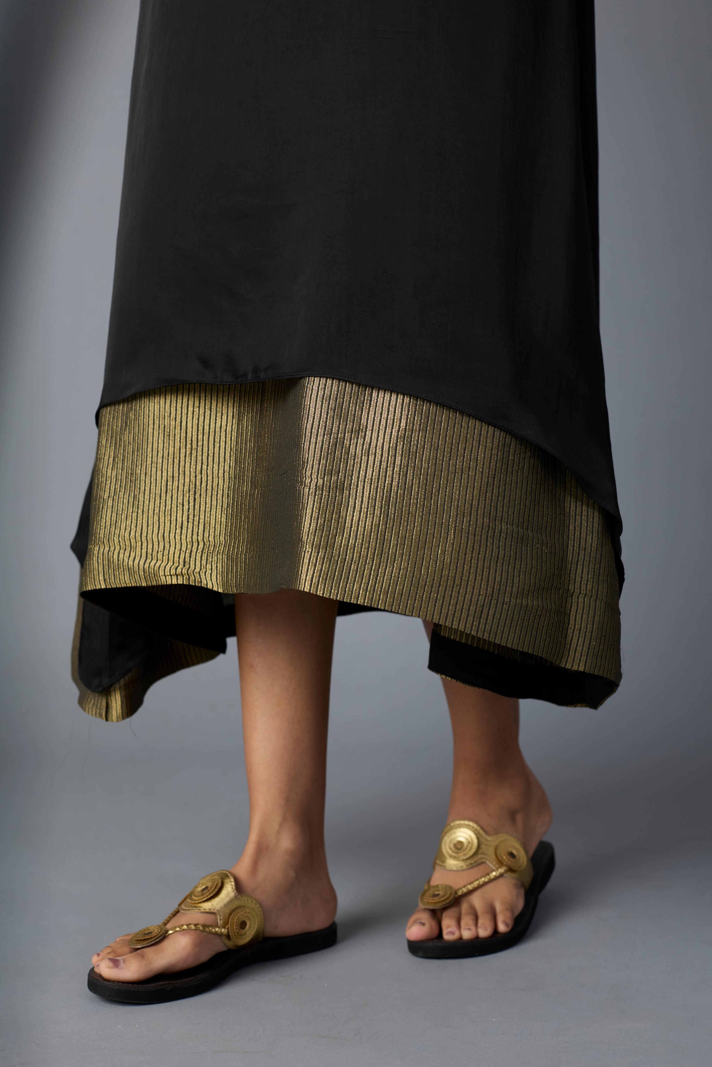 Halter neck dress with an under layer of Zari stripes and key hole details at the back.