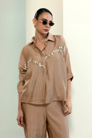 A breezy shirt with abstract embellishment for an effortlessly classy look. Wear it tucked in or loose — it’s a versatile piece you can style your way.