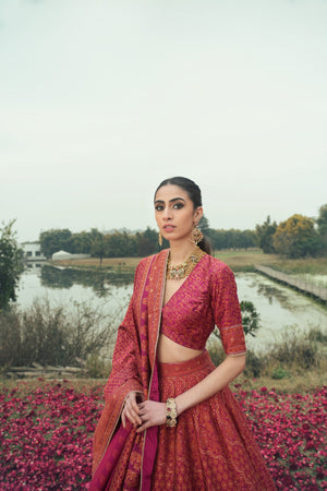 The Qalb Lehenga is a beautiful and elegant piece of clothing that is perfect for any special occasion. It is made from a luxurious vegan silk fabric that is soft and comfortable to wear. The woven lehenga features intricate chikankari weave that adds a touch of glamour and sophistication.
