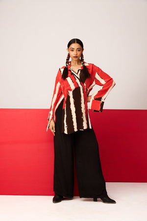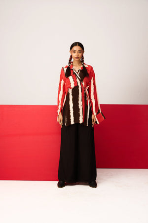 Assymetrical tie up shirt paired with pants