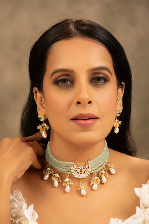 Elevate your style with our exquisite Gold Plated Chokar Necklace, a captivating blend of tradition and contemporary allure. This Chokar Necklace, intricately adorned with Kundan and Pearl detailing, exudes timeless elegance. The attractive gold polish enhances its beauty, making it the perfect accessory for any fashion-forward occasion. Embrace the latest design and elevate your look with this captivating and attractive piece, seamlessly marrying classic charm with modern style Closure: post and back Wipe your jewellery with a soft cloth after every use