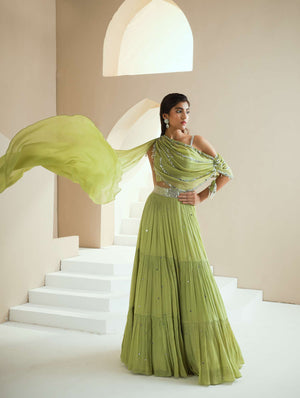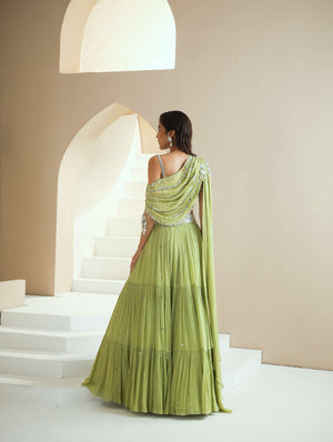 Kaftan With An Embellished Neckline And Sleeves And Embroidery Patch On The Waist.